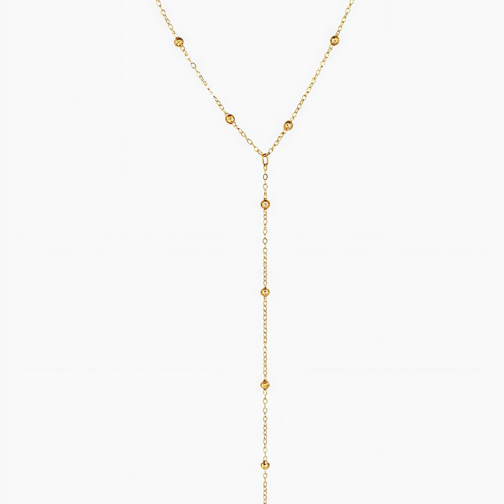 Collier doré en forme de Y, orné de cristaux éclatants. Élégant et sensuel, il sublime le décolleté avec finesse.